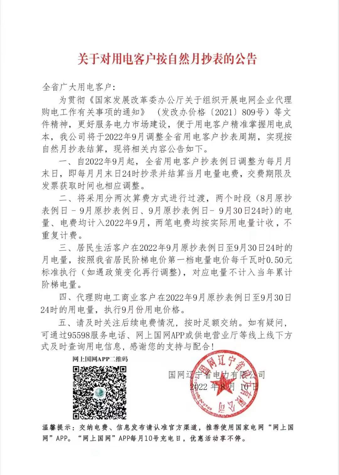 關(guān)于對(duì)用電客戶按自然月抄表的公告