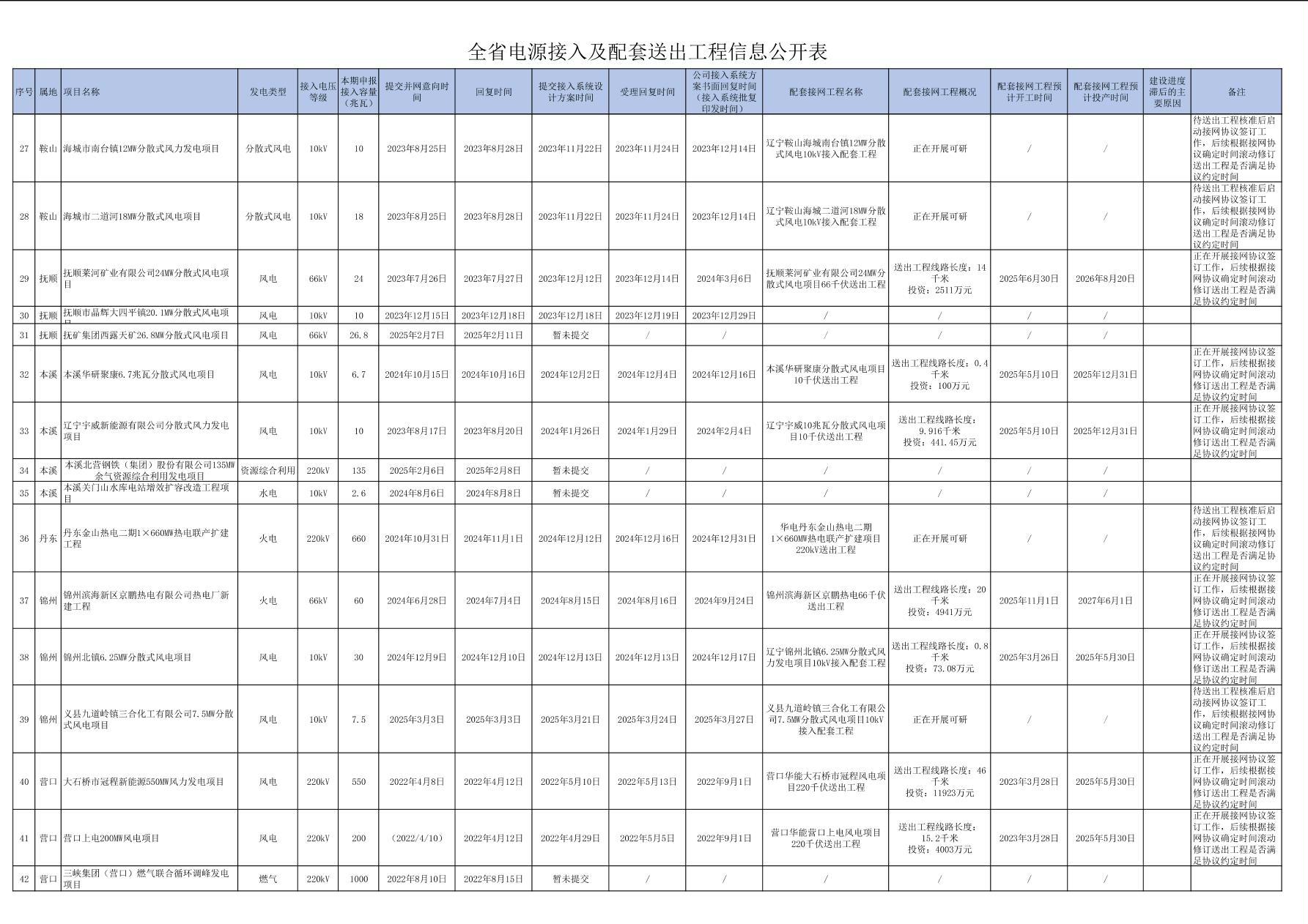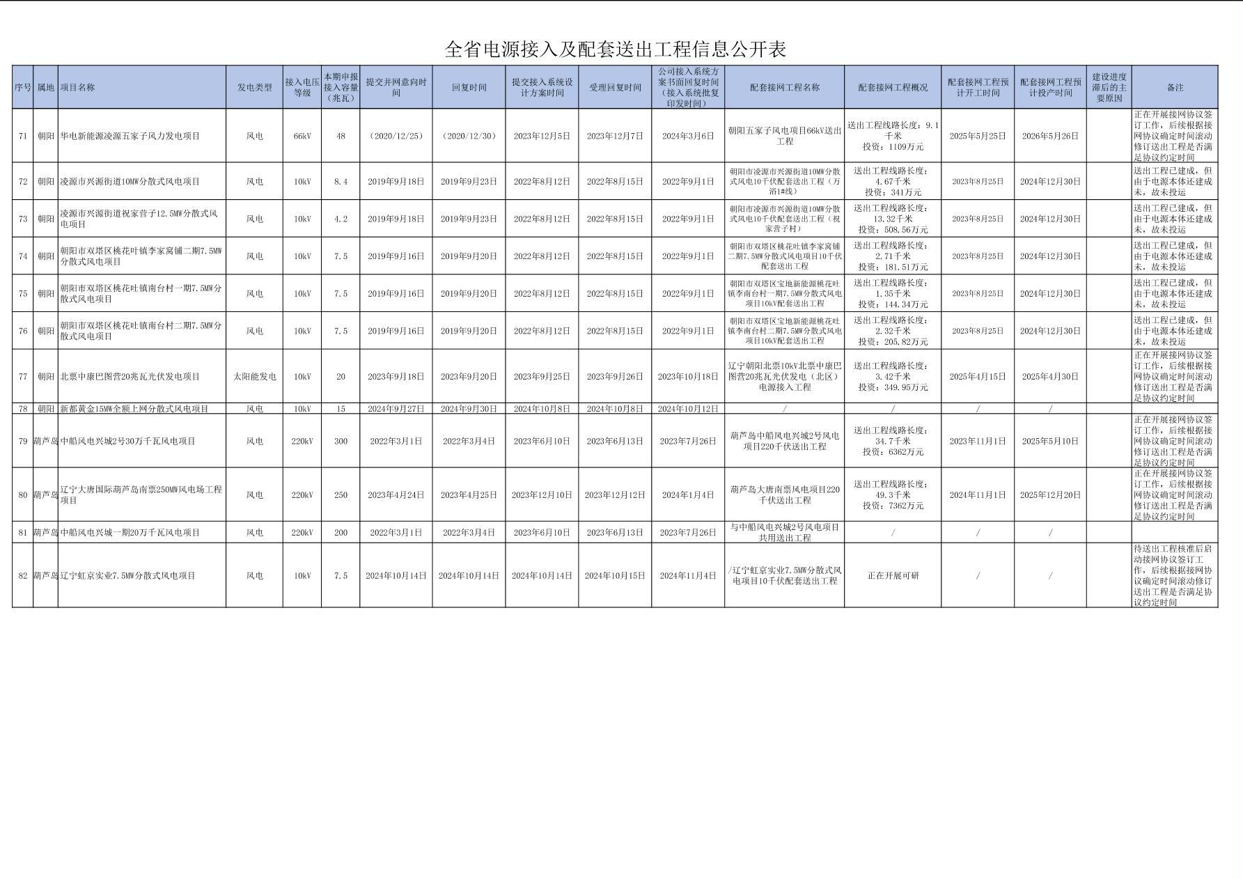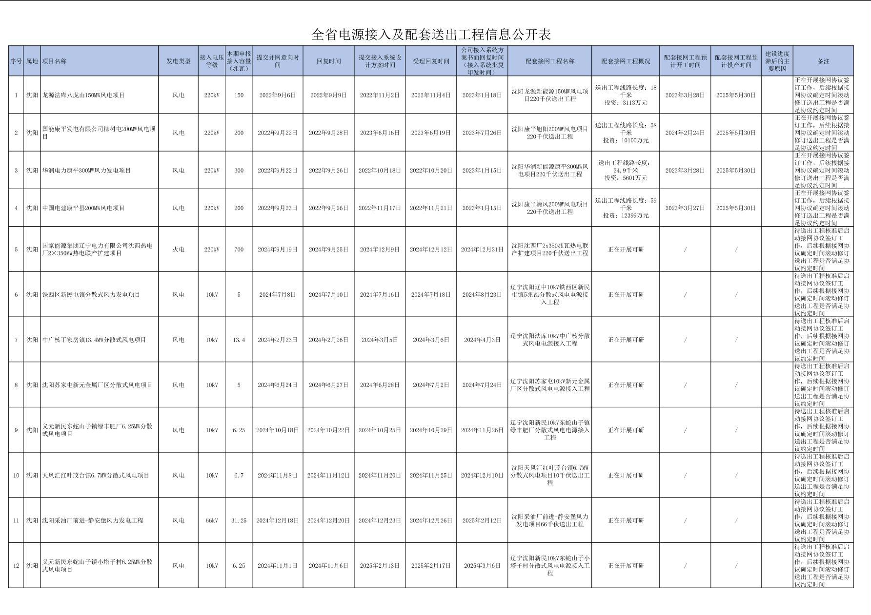 全省電源接入及配套送出工程信息公開(kāi)表