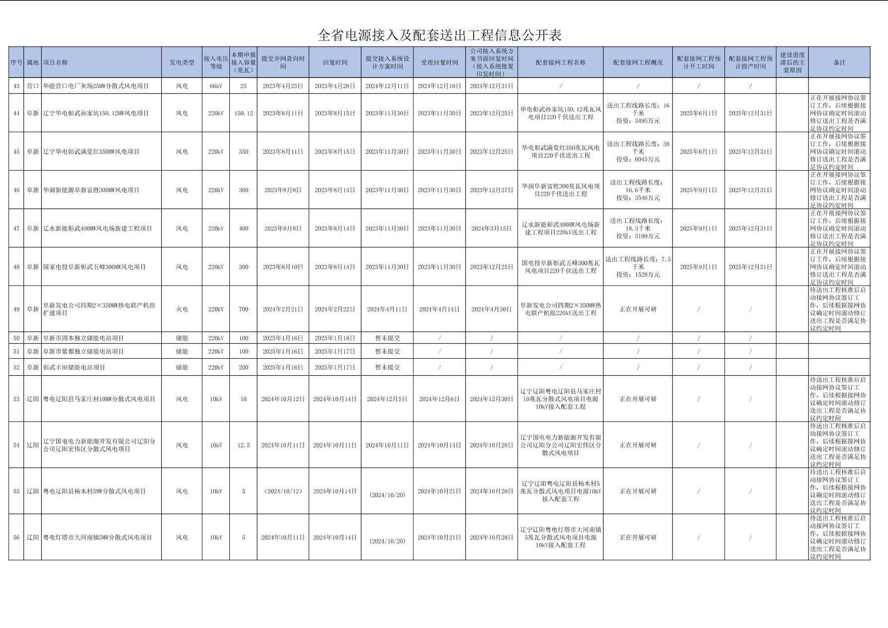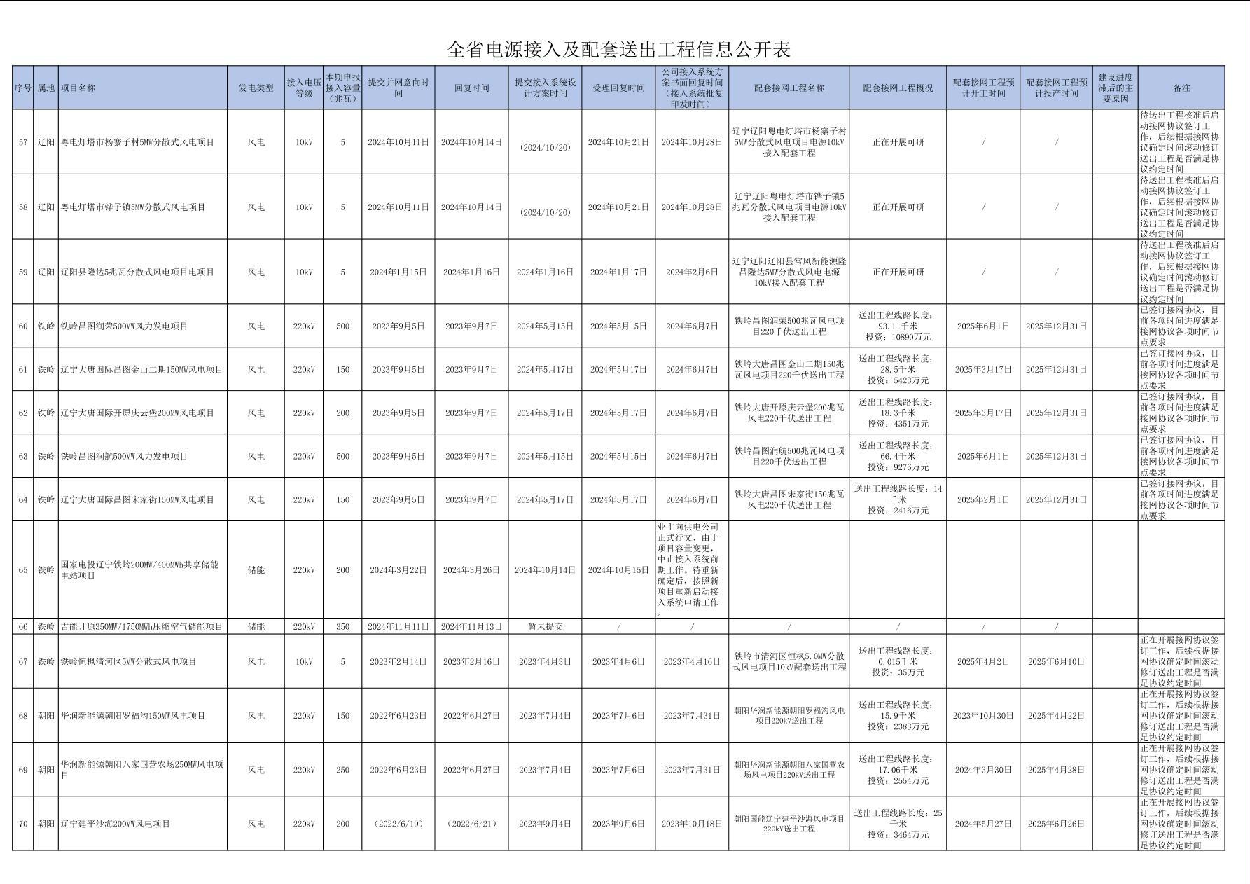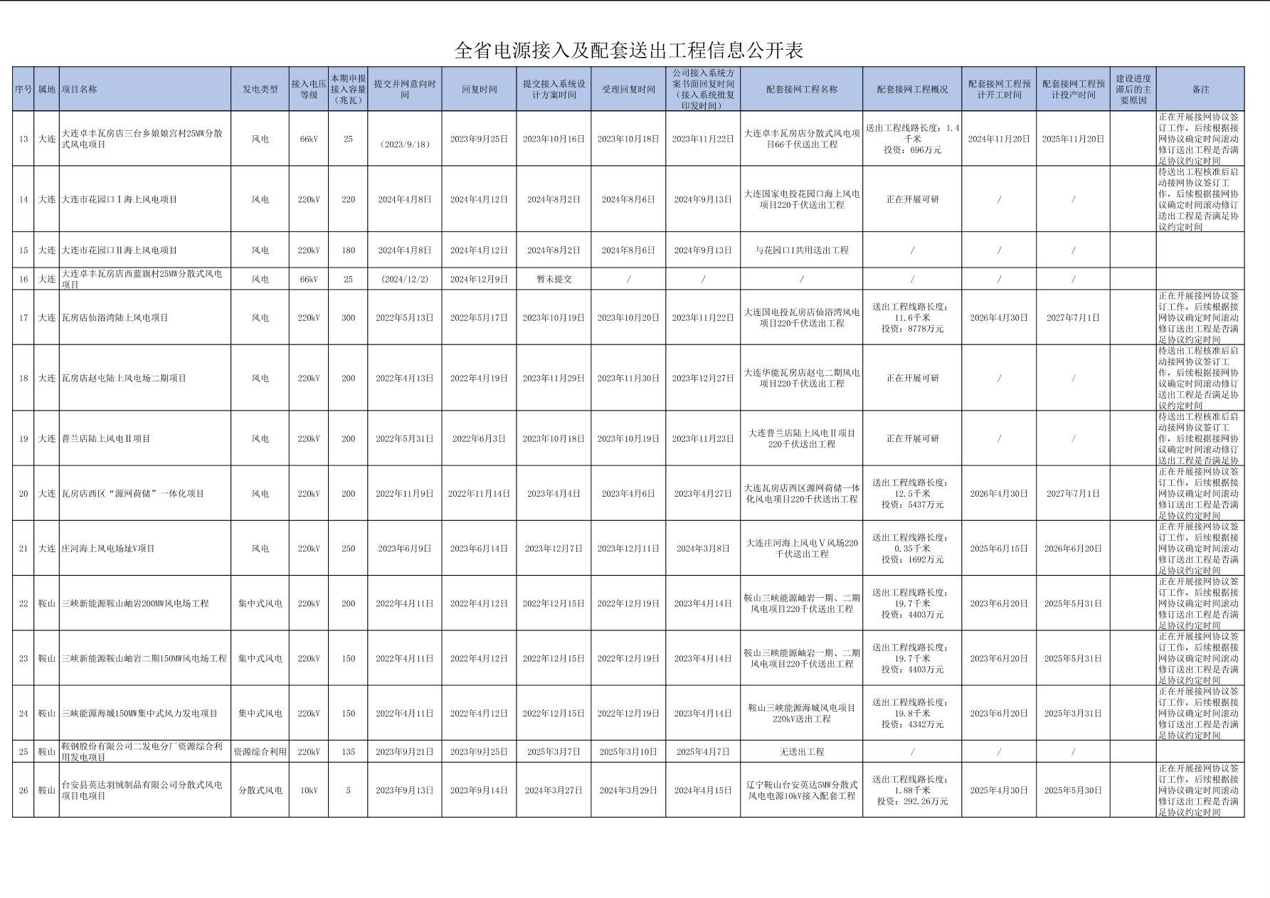 全省電源接入及配套送出工程信息公開(kāi)表
