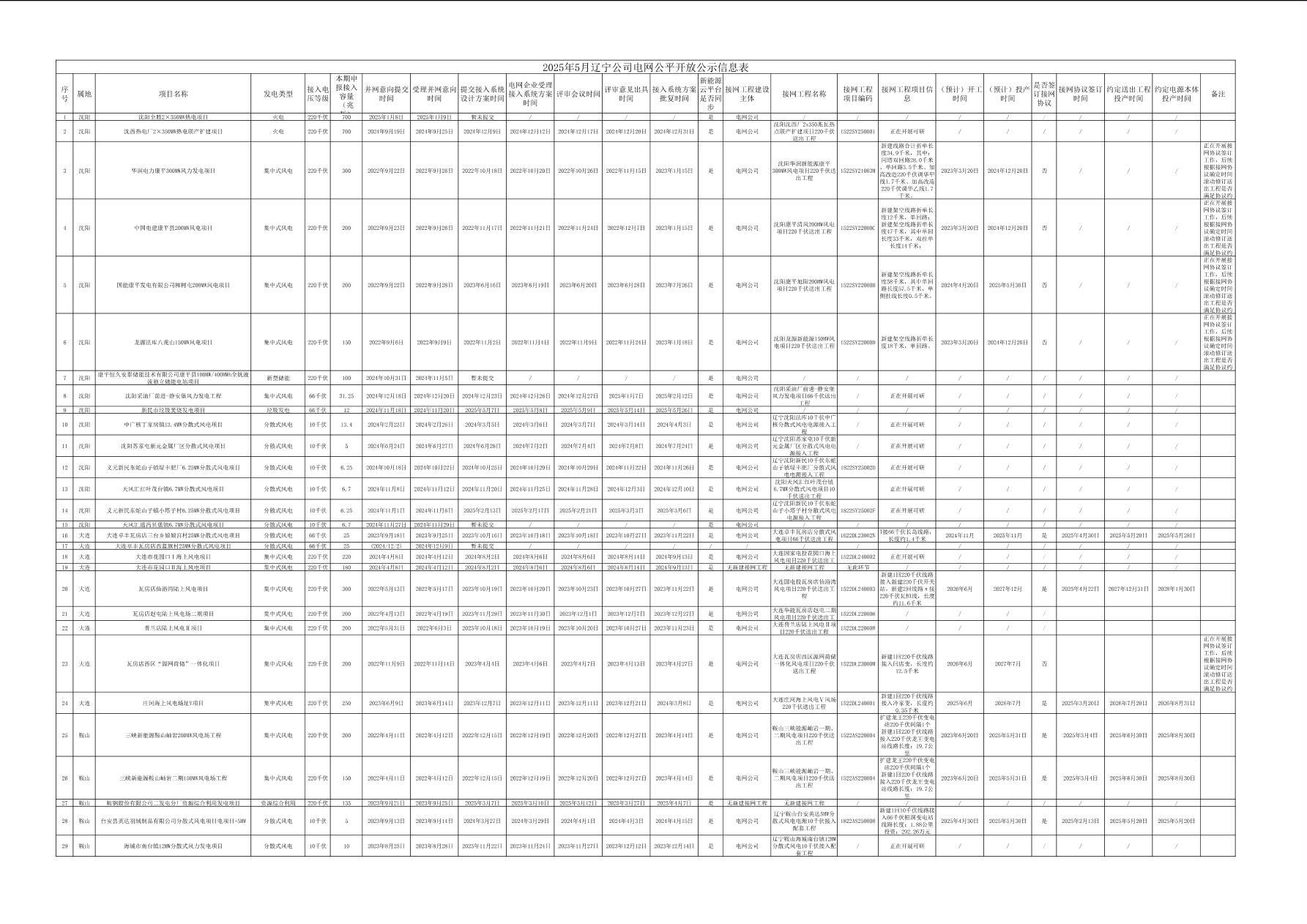 全省電源接入及配套送出工程信息公開表-5月