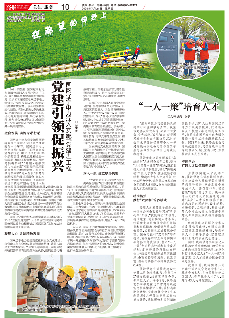 2021年以來,國網(wǎng)遼寧省電力有限公司深入實施“黨建+”工程,依托雷鋒精神發(fā)祥地的地域優(yōu)勢,組織178支國家電網(wǎng)遼寧電力雷鋒共產(chǎn)黨員服務(wù)隊全心全意為民提供優(yōu)質(zhì)服務(wù)。該公司堅持制度化建設(shè)、標(biāo)準(zhǔn)化推進(jìn)、多元化服務(wù)、品牌化運作,在保障電力供應(yīng)、優(yōu)化電力營商環(huán)境、助力鄉(xiāng)村振興、參與社會公益等方面,全面助力遼寧振興發(fā)展,讓黨旗在為民服務(wù)一線高高飄揚。 融合發(fā)展 實施專項行動 國網(wǎng)遼寧電力黨委始終堅持將黨建工作融入企業(yè)生產(chǎn)經(jīng)營的每一個環(huán)節(jié)。國網(wǎng)遼寧電力創(chuàng)新實施“黨建+”工程亮旗攻堅專項行動,用15個子行動、30個示范項目,構(gòu)建黨建和業(yè)務(wù)一體聯(lián)動、相融互促新格局。葫蘆島供電公司“‘黨建+電融濱城’,電企e家”項目是示范項目落地基層的優(yōu)質(zhì)案例。葫蘆島供電公司將“電e金服”服務(wù)與能源轉(zhuǎn)型升級相互融合,通過對重點企業(yè)的走訪調(diào)研,了解到中核遼寧核電有限公司的徐大堡核電項目具備清潔能源綠色屬性,便量體裁衣制訂方案,為其提供“碳e融”產(chǎn)品服務(wù),助力該企業(yè)獲得低息信用貸款16.74億元,并簽署綠色金融政策長期服務(wù)合作協(xié)議,推動葫蘆島經(jīng)濟(jì)高質(zhì)量發(fā)展和綠色轉(zhuǎn)型。2024年6月,國網(wǎng)遼寧電力憑借“挖掘遼電綠 助力實體紅——基于葫蘆島徐大堡核電項目的綠色電力供應(yīng)鏈金融實踐”項目獲得中國物流與采購聯(lián)合會供應(yīng)鏈金融領(lǐng)域優(yōu)秀案例一等獎。 國網(wǎng)遼寧電力組織品質(zhì)黨建對標(biāo)達(dá)標(biāo),命名30個“五星級黨支部”,4個單位獲評國家電網(wǎng)有限公司黨建專業(yè)標(biāo)桿;以“五抓五強(qiáng)”工作方法持續(xù)提高黨建工作質(zhì)量。 凝聚人心 共筑精神家園 國網(wǎng)遼寧電力黨委高度重視企業(yè)文化建設(shè),將黨建工作與企業(yè)文化建設(shè)緊密結(jié)合,共同構(gòu)筑員工的精神家園。7月9日,鞍山供電公司充分發(fā)揮鞍鋼警示教育基地的陣地優(yōu)勢,組織黨員代表參觀了鞍山市警示教育館,觀看教育警示紀(jì)錄片,進(jìn)一步增強(qiáng)員工對黨紀(jì)國法的敬畏之心和廉潔自律的意識。 國網(wǎng)遼寧電力深入開展黨紀(jì)學(xué)習(xí)教育,堅持以理論學(xué)習(xí)武裝人,以典型案例警醒人,以督導(dǎo)調(diào)研帶動人,出臺黨委會議“第一議題”制度實施辦法,深化“溫習(xí)·知新”聯(lián)學(xué)研修,細(xì)化中心組學(xué)習(xí)質(zhì)量提升措施,以“關(guān)鍵少數(shù)”帶動“絕大多數(shù)”,黨內(nèi)集中教育取得新成效。該公司以19項鞏固拓展措施健全“四個以學(xué)”長效機(jī)制,扎實推進(jìn)各項學(xué)習(xí)、警示教育、紀(jì)律黨課等重點工作,相關(guān)做法在國家電網(wǎng)公司簡報、專欄刊發(fā)5次,在中央級媒體發(fā)布18次。 在濃厚的文化氛圍熏陶下,國網(wǎng)遼寧電力涌現(xiàn)出了一批批優(yōu)秀員工和團(tuán)隊:朝陽供電公司張清成功入圍第九屆全國道德模范“見義勇為模范”候選人,鞍山供電公司張貴斌、撫順供電公司劉傳波當(dāng)選“敬業(yè)奉獻(xiàn)”類“中國好人”。 深入一線 建立聯(lián)絡(luò)機(jī)制 “太謝謝你們了,我們2萬多只肉雞保住啦!”遼寧省阜新蒙古族自治縣豐源肉雞養(yǎng)殖場負(fù)責(zé)人孫猛感激地說。7月17日,國家電網(wǎng)遼寧電力(阜新格日勒)雷鋒共產(chǎn)黨員服務(wù)隊隊長梁杰浩和隊員武文成來到豐源肉雞養(yǎng)殖場,迅速檢查并幫助客戶更換因電源線過熱造成短路的電纜,快速恢復(fù)用電。 國家電網(wǎng)遼寧電力雷鋒共產(chǎn)黨員服務(wù)隊是國網(wǎng)遼寧電力黨建工作的一張亮麗名片。178支國家電網(wǎng)遼寧電力雷鋒共產(chǎn)黨員服務(wù)隊、4500余名“遼電雷鋒”深入社區(qū)、農(nóng)村、學(xué)校等地,根據(jù)客戶夏季用電特點劃分黨員責(zé)任區(qū)、設(shè)立黨員示范崗,開展形式多樣的志愿服務(wù)活動,建立“一對一”聯(lián)絡(luò)機(jī)制。 近年來,國網(wǎng)遼寧電力印發(fā)《雷鋒共產(chǎn)黨員服務(wù)隊管理實施細(xì)則》《共產(chǎn)黨員突擊隊管理實施細(xì)則》,推廣24節(jié)氣工作法,健全閉環(huán)管理機(jī)制,深化新時代共產(chǎn)黨員服務(wù)隊建設(shè)。該公司常年統(tǒng)一開展服務(wù)隊專項行動,發(fā)起“學(xué)雷鋒”活動月紀(jì)念活動,年均開展服務(wù)約10萬次,引領(lǐng)全員崗位學(xué)雷鋒融入日常、化作經(jīng)常,真正解決了一批群眾急難愁盼問題。 (文/宋青)