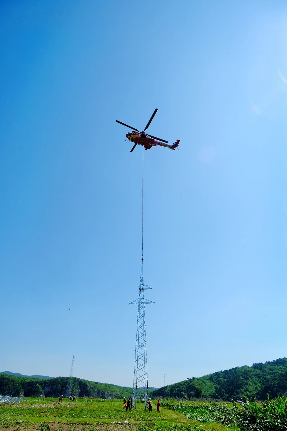 8月27日,國(guó)家電網(wǎng)有限公司H215直升機(jī)高效開展遼寧省葫蘆島市建昌縣因?yàn)?zāi)受損主網(wǎng)10基鐵塔的新塔組立作業(yè),預(yù)計(jì)8月29日完成搶修并送電。66千伏朱家線將恢復(fù)為5座66千伏變電站供電,建昌縣地區(qū)主網(wǎng)全面恢復(fù)安全運(yùn)行狀態(tài)。 當(dāng)天10時(shí)25分,H215直升機(jī)吊運(yùn)一座2噸重的66千伏鐵塔塔身,進(jìn)入八家子鎮(zhèn)高家屯村上空。飛行員操作直升機(jī)穩(wěn)穩(wěn)懸停在66千伏朱家線31號(hào)鐵塔基礎(chǔ)上方,根據(jù)地面指揮人員手勢(shì),緩緩下降高度。同時(shí),地面配合人員拉緊牽引繩調(diào)整鐵塔方位,對(duì)準(zhǔn)塔基立塔、加固,10分鐘后31號(hào)新塔組立完成。 受東北冷渦和副熱帶高壓外圍水汽影響,8月18日23時(shí)至21日8時(shí),遼寧省西部地區(qū)出現(xiàn)暴雨到大暴雨,朝陽、葫蘆島地區(qū)的個(gè)別鄉(xiāng)鎮(zhèn)甚至出現(xiàn)特大暴雨。災(zāi)害造成建昌縣66千伏朱家線倒塔10基、塔材變形3基,倒塔區(qū)段導(dǎo)地線不同程度受損。 災(zāi)情發(fā)生后,國(guó)家電網(wǎng)有限公司堅(jiān)持全網(wǎng)“一盤棋”,緊急從國(guó)網(wǎng)電力空間技術(shù)有限公司調(diào)配直升機(jī)和無人機(jī),馳援遼寧開展搶險(xiǎn)救援工作。其中,H215直升機(jī)克服天氣條件和復(fù)雜地形,跨越多省市,長(zhǎng)距離飛行,最終抵達(dá)葫蘆島建昌縣,提前巡檢、排查受災(zāi)線路區(qū)段,快速查明故障情況,為準(zhǔn)確判斷受災(zāi)原因、提升應(yīng)急響應(yīng)等提供科學(xué)依據(jù)。 “受損鐵塔現(xiàn)場(chǎng)的道路損毀嚴(yán)重,留存大量淤泥,地勢(shì)情況復(fù)雜。如果按照常規(guī)搶修方式,吊車等施工機(jī)械無法到達(dá)指定搶修地點(diǎn),如果采用人力運(yùn)輸?shù)确绞?,需要一周以上的搶修時(shí)間?!眹?guó)網(wǎng)遼寧電力設(shè)備管理部輸電處處長(zhǎng)張宏志說。該公司經(jīng)研判,決定采用直升機(jī)吊運(yùn)方式,2天半即可完成搶修任務(wù)。國(guó)網(wǎng)遼寧電力詳細(xì)編制總體搶修方案,統(tǒng)籌各類搶修物料,使用直升機(jī)提前2天將搶修塔材運(yùn)至現(xiàn)場(chǎng),組織120人開展搶修恢復(fù)作業(yè),配合國(guó)網(wǎng)空間技術(shù)公司開展直升機(jī)作業(yè),確保搶修工作安全高效推進(jìn)。 作業(yè)難度大、作業(yè)強(qiáng)度高、任務(wù)量重。吊運(yùn)的鐵塔約26米高,直升機(jī)吊索30米高?;A(chǔ)地腳螺栓直徑2.4厘米,塔腳板螺栓孔3厘米,給直升機(jī)吊塔僅留有6毫米的空隙進(jìn)行對(duì)接。飛行員要在相當(dāng)于30層樓近56米的高度與地面人員配合完成,精準(zhǔn)對(duì)接。 國(guó)網(wǎng)空間技術(shù)公司特種作業(yè)中心工程搶險(xiǎn)處處長(zhǎng)郭曉冰介紹,此次,該公司在國(guó)內(nèi)首次采用“拆舊+立新”連續(xù)作業(yè)模式,直升機(jī)吊出廢舊鐵塔后,在原塔基直接組立新塔。