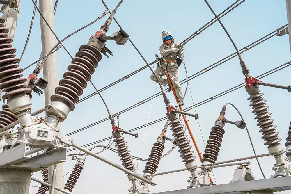 國(guó)網(wǎng)鞍山供電公司變電運(yùn)檢二工區(qū)不停電斷開(kāi)220千伏寧遠(yuǎn)變電站引流線,提升電網(wǎng)檢修質(zhì)效。唐慧寶 攝