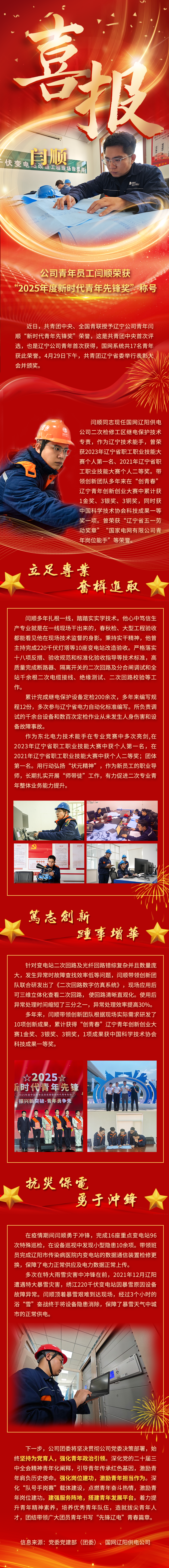 國網(wǎng)遼寧電力青年員工閆順榮獲“2025年度新時代青年先鋒獎”稱號