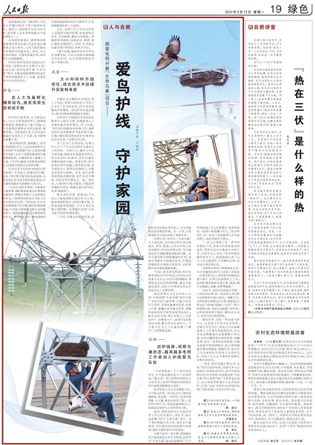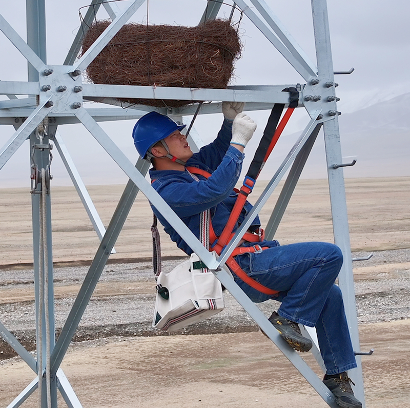 我國(guó)地域遼闊、氣候多樣,為鳥類生存繁衍提供了得天獨(dú)厚的條件。據(jù)統(tǒng)計(jì),我國(guó)現(xiàn)有鳥類1500余種,是世界上鳥類多樣性最為豐富的國(guó)家之一。   在高原草原地區(qū),獵隼等珍稀猛禽喜歡擇高而居,但這些地區(qū)通常缺乏高大樹木,又高又穩(wěn)的輸電桿塔便成為筑巢首選。然而,鳥兒銜來(lái)的鐵絲、木棍等筑巢材料,卻容易引發(fā)線路跳閘。 四川若爾蓋草原,一只猛禽飛離“生命鳥巢”覓食。   如何在維護(hù)電網(wǎng)安全穩(wěn)定運(yùn)行的同時(shí),保障鳥類安全繁衍生息?2016年起,國(guó)家電網(wǎng)開展“生命鳥巢”項(xiàng)目,在輸電線路周圍安裝適合不同種類猛禽的人工鳥巢,促進(jìn)電網(wǎng)與鳥類和諧共生。 護(hù)鳥——在人工鳥巢孵化哺育幼鳥,維系草原生態(tài)系統(tǒng)平衡   四川若爾蓋草原,天空碧藍(lán)如洗。110千伏若真線桿塔上,獵隼繞桿塔盤旋,穩(wěn)穩(wěn)停在了巢穴邊緣,幾只毛茸茸的獵隼寶寶探出腦袋、嗷嗷待哺。當(dāng)?shù)仉娋W(wǎng)工作人員用金沙藤編織而成的人工鳥巢,成為獵隼的溫馨小家。   “鼠兔啃食牧草、掘洞翻土,容易讓草原退化沙化。”山水自然保護(hù)中心鳥類保護(hù)專家黃建介紹,以前沒有輸電桿塔時(shí),會(huì)專門設(shè)置招鷹架吸引猛禽捕食鼠類。在輸電桿塔上搭建人工鳥巢,不僅可以避免鳥類影響電網(wǎng)安全,還能維系草原生態(tài)系統(tǒng)平衡。 四川若爾蓋草原,兩只鳥在輸電線路上的人工鳥巢邊休息。   鳥類活動(dòng)為何會(huì)給電網(wǎng)安全帶來(lái)影響?專家表示,筑巢用的木棍、鐵絲、草稈等可能導(dǎo)致電線短路;鳥糞也是引發(fā)鳥線矛盾的常見原因,約占輸電線路涉鳥故障的八成左右。   “鳥類的直腸非常短,不能儲(chǔ)存大量糞便,隨時(shí)隨地排泄出的糞便具有腐蝕性,掉落在絕緣子上會(huì)影響電網(wǎng)安全。”國(guó)網(wǎng)阿壩供電公司電力專家劉勇告訴記者,不僅如此,有些鳥類有啄絕緣子的習(xí)慣,破壞桿塔絕緣功能;鳥類起飛和降落過(guò)程中動(dòng)作幅度較大,身體接觸線路也可能影響供電安全。相關(guān)統(tǒng)計(jì)顯示,輸電線路涉鳥故障是除雷擊和外力破壞外,引發(fā)線路跳閘的第三大原因。   過(guò)去,電網(wǎng)工作人員會(huì)在桿塔上設(shè)置防鳥驅(qū)鳥裝置,比如旋轉(zhuǎn)式風(fēng)車、反光鏡等,避免鳥類停留。但隨著時(shí)間推移,設(shè)備老化、掉落,難以提供長(zhǎng)期防護(hù)。有時(shí),鳥類適應(yīng)設(shè)備后便不再害怕,效果并不好。   “堵不如疏,輸電桿塔并非所有區(qū)域都危險(xiǎn),不如主動(dòng)將鳥巢搭建在非防護(hù)區(qū),為鳥類提供棲息空間?!眲⒂陆榻B。 筑巢——大小和材料升級(jí)優(yōu)化,結(jié)合技術(shù)手段提升安裝精準(zhǔn)度   穿戴好安全帽和安全繩索,背上工具包,國(guó)網(wǎng)玉樹供電公司員工江永巴丁和尕松亞培,向15米高的輸電桿塔攀登。到達(dá)桿塔合適位置后,他們將繩索緩緩拋投至地面。   在桿塔下方指揮的扎西科供電服務(wù)中心班長(zhǎng)當(dāng)周,用繩索將人工鳥巢和鐵絲附件綁好,向上傳遞?!拔覀兘Y(jié)合線路停電檢修工作,通常選擇在鳥類繁殖季節(jié)前安裝鳥巢,位置大概在距離帶電部位90厘米處的安全區(qū)域?!碑?dāng)周告訴記者。 青海三江源地區(qū),國(guó)網(wǎng)青海電力工作人員在登塔安裝鳥巢。   為了讓鳥兒住得舒適,電網(wǎng)工作人員下了不少工夫研究鳥巢的大小和材料。先看大小,通過(guò)與行業(yè)專家溝通,根據(jù)成年猛禽體長(zhǎng)特點(diǎn),設(shè)計(jì)直徑約100厘米、深約40厘米的圓形碗狀鳥巢。再看材料,剛開始他們用竹筐鋪上稻草做鳥巢,但當(dāng)?shù)仫L(fēng)沙大,稻草容易被刮飛,竹筐也容易風(fēng)化破損。后來(lái),他們?cè)囍鴮⒌静輷Q成椰棕墊,將竹條改為柳條,用鐵絲牢牢綁扎在一起。再往后,又將材料升級(jí)為藤條,并提前用防腐藥水浸泡,增強(qiáng)鳥巢的耐用性,變身“精裝房”。   截至2023年底,我國(guó)220千伏及以上輸電線路長(zhǎng)度約92萬(wàn)公里。輸電線路距離長(zhǎng)、桿塔位置分散,尤其是高原草原地區(qū),不少分布在交通不便位置。如何提升安裝“生命鳥巢”的效率和精準(zhǔn)度?   一方面,鳥巢會(huì)安裝在水域、食物相對(duì)充足地區(qū)的桿塔上,為鳥類提供良好的棲息環(huán)境。另一方面,大數(shù)據(jù)等技術(shù)手段也發(fā)揮了重要作用。   劉勇介紹,在四川,“生命鳥巢”正式選址前,會(huì)詳細(xì)記錄鳥類出現(xiàn)地點(diǎn)、種類、數(shù)量,以及在桿塔上的活動(dòng)情況、活動(dòng)區(qū)域等信息,為鳥巢選址和合理配置提供數(shù)據(jù)支撐。在若爾蓋草原無(wú)網(wǎng)絡(luò)覆蓋的區(qū)域,創(chuàng)新應(yīng)用新型無(wú)線通信技術(shù),實(shí)現(xiàn)監(jiān)控畫面的無(wú)網(wǎng)絡(luò)實(shí)時(shí)回傳,及時(shí)掌握鳥類筑巢的最新數(shù)據(jù)。   “比如,結(jié)合相關(guān)數(shù)據(jù),我們發(fā)現(xiàn)若真線39號(hào)桿塔近3年均有鳥類筑巢且發(fā)生過(guò)2次涉鳥故障跳閘,周圍鼠兔活動(dòng)也特別頻繁,滿足鳥巢選址要求,因此今年便將這里定為安裝點(diǎn)位?!眲⒂屡e例。   國(guó)家電網(wǎng)公司有關(guān)負(fù)責(zé)人介紹,目