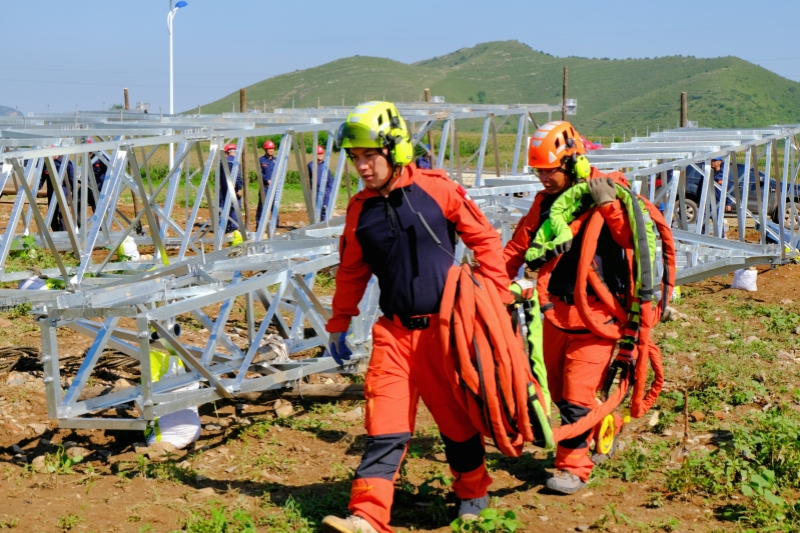 8月27日10時(shí)25分,國(guó)家電網(wǎng)有限公司一架H215直升機(jī)吊運(yùn)一座2噸重的66千伏鐵塔,進(jìn)入遼寧省葫蘆島市建昌縣八家子鎮(zhèn)高家屯村上空,開(kāi)展鐵塔組立作業(yè)。 直升機(jī)起吊66千伏朱家線31號(hào)新塔 飛行員操作直升機(jī)穩(wěn)穩(wěn)懸停在66千伏朱家線31號(hào)鐵塔基礎(chǔ)上方,根據(jù)地面指揮人員手勢(shì),緩緩下降高度。同時(shí),地面配合人員拉緊牽引繩調(diào)整鐵塔方位,對(duì)準(zhǔn)塔基立塔、加固。10分鐘后,31號(hào)新塔組立完成。 直升機(jī)懸停在鐵塔基礎(chǔ)上方,與地面搶修人員配合組塔。 66千伏朱家線全長(zhǎng)35千米,共130基鐵塔,為5座66千伏變電站供電,是葫蘆島興城市西部地區(qū)重要的電源線路。近期該地區(qū)出現(xiàn)特大暴雨,造成線路嚴(yán)重受損。該線路第一時(shí)間通過(guò)備自投動(dòng)作由66千伏興紅線成功轉(zhuǎn)帶5座變電站負(fù)荷,未對(duì)供電造成影響。 “受損鐵塔現(xiàn)場(chǎng)道路損毀嚴(yán)重,留存大量淤泥,地勢(shì)情況復(fù)雜。如果按照常規(guī)搶修方式,吊車(chē)等施工機(jī)械無(wú)法到達(dá)指定搶修地點(diǎn);如果采用人力運(yùn)輸?shù)确绞?,至少需要一周的搶修時(shí)間?!眹?guó)網(wǎng)遼寧電力設(shè)備管理部輸電處處長(zhǎng)張宏志說(shuō)。 直升機(jī)吊運(yùn)鐵塔 此次作業(yè)是國(guó)家電網(wǎng)公司在國(guó)內(nèi)首次采用“拆舊+立新”連續(xù)作業(yè)模式,直升機(jī)吊出廢舊鐵塔后,在原塔基直接組立新塔。8月24日起,國(guó)網(wǎng)空間技術(shù)公司按要求派出直升機(jī),高效完成了66千伏朱家線鐵塔受損塔材的拆運(yùn)作業(yè)。 此次吊運(yùn)組塔作業(yè)難度大、強(qiáng)度高、任務(wù)重。吊運(yùn)的鐵塔高約26米,基礎(chǔ)地腳螺栓直徑2.4厘米,塔腳板螺栓孔直徑3厘米。塔基周邊是堅(jiān)硬的巖石,無(wú)合適位置安裝輔助對(duì)接導(dǎo)軌,直升機(jī)組塔作業(yè)時(shí)只能直接對(duì)接塔腳板和基礎(chǔ)地腳螺栓,僅有6毫米的對(duì)接空隙。飛行員要駕駛直升機(jī)在相當(dāng)于30層樓近56米的高度與地面人員配合作業(yè),精準(zhǔn)完成對(duì)接。 地面搶修人員拉緊牽引繩調(diào)整鐵塔方位,對(duì)準(zhǔn)塔基立塔、加固。 14時(shí)20分,經(jīng)過(guò)近四個(gè)小時(shí)的奮力搶修,在直升機(jī)和地面搶修人員的密切配合下,因特大暴雨受損的10基鐵塔全部組立完成。 國(guó)網(wǎng)空間技術(shù)公司技術(shù)人員在材料場(chǎng)地準(zhǔn)備起吊器材。 在此次搶險(xiǎn)救災(zāi)中,國(guó)網(wǎng)遼寧電力與國(guó)網(wǎng)空間技術(shù)公司針對(duì)災(zāi)區(qū)極端條件,通過(guò)衛(wèi)星遙感快速普查災(zāi)情,利用貝爾429直升機(jī)詳查災(zāi)情,利用H215直升機(jī)開(kāi)展吊裝作業(yè),使用可視化智能監(jiān)控設(shè)備實(shí)施遠(yuǎn)程監(jiān)控,形成“空天地”立體災(zāi)害應(yīng)急體系,為快速高效開(kāi)展電力應(yīng)急搶修提供有力保障。