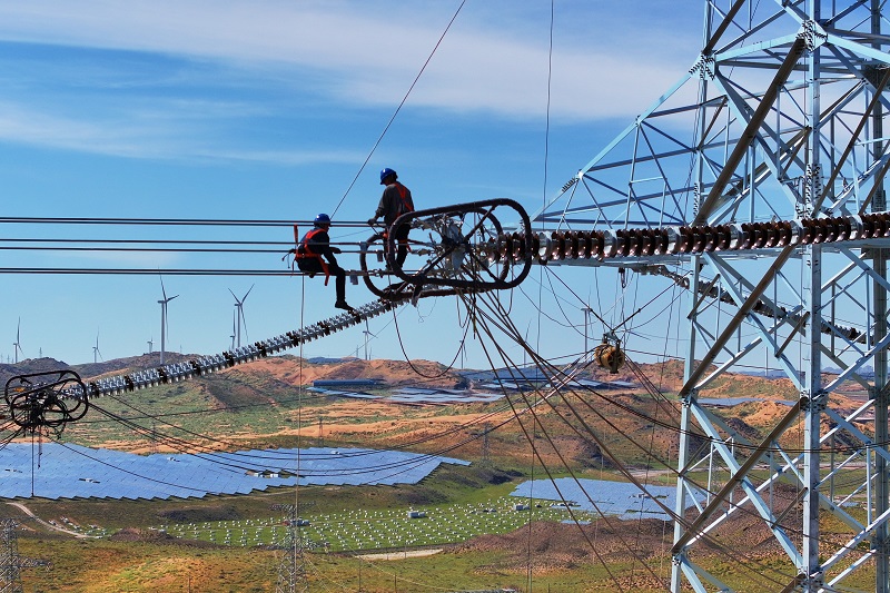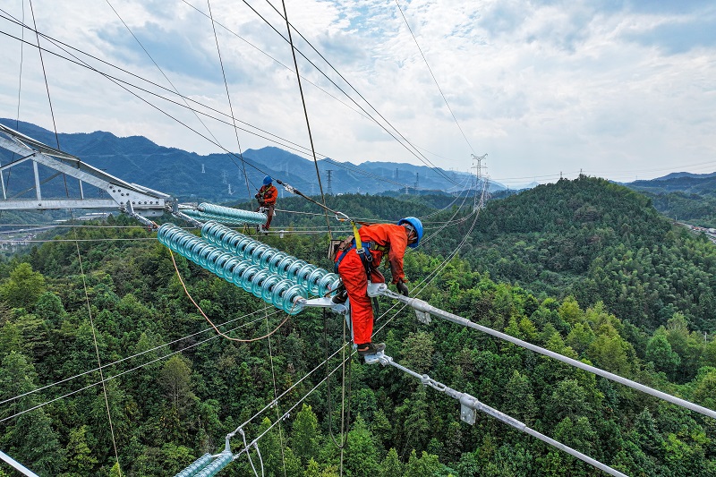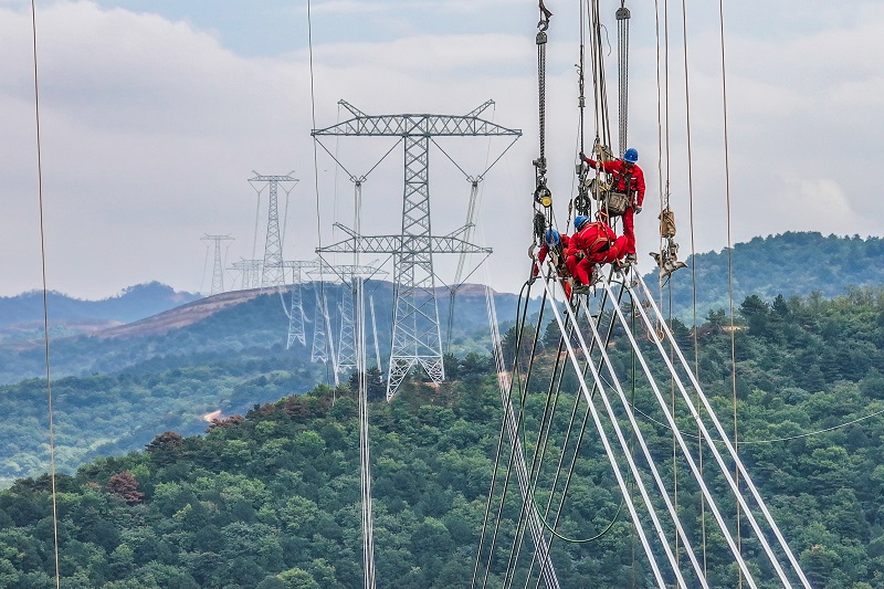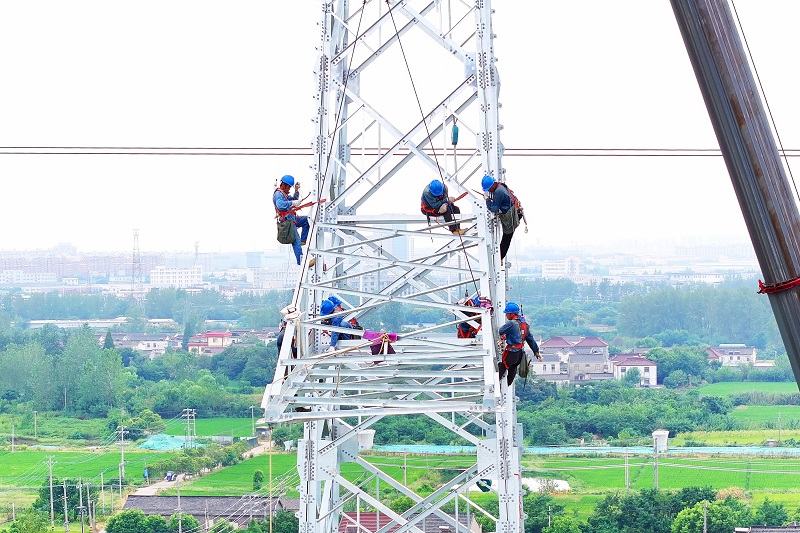 金秋十月,正值電網(wǎng)建設(shè)施工黃金期。國家電網(wǎng)有限公司統(tǒng)籌發(fā)展和安全,樹牢安全第一理念,強(qiáng)化電網(wǎng)穩(wěn)定管理,加快重點(diǎn)工程建設(shè),確保完成全年目標(biāo)任務(wù)。公司各單位落實(shí)安全、質(zhì)量、進(jìn)度要求,細(xì)化人員、技術(shù)、裝備、物資等措施,有序推進(jìn)工程項(xiàng)目建設(shè),保障電力安全可靠供應(yīng),全力服務(wù)經(jīng)濟(jì)社會(huì)高質(zhì)量發(fā)展。 國網(wǎng)北京電力工程有限公司施工人員開展樹村220千伏輸變電工程組塔作業(yè)。 國網(wǎng)天津建設(shè)公司員工在蘆臺(tái)500千伏變電站擴(kuò)建工程現(xiàn)場進(jìn)行主變表計(jì)消缺復(fù)驗(yàn)工作。 國網(wǎng)河北建設(shè)公司施工人員在雄安(北京西)1000千伏特高壓變電站擴(kuò)建工程安裝套管設(shè)備。 國網(wǎng)北京送變電有限公司施工人員在牌樓500千伏變電站新建工程現(xiàn)場安裝500千伏管母線跳線。 國網(wǎng)山西送變電公司高空作業(yè)人員在隴東—山東±800千伏特高壓直流輸電工程施工現(xiàn)場安裝附件。 國網(wǎng)山東淄博供電公司施工人員開展西里220千伏輸變電工程組塔作業(yè)。 國網(wǎng)山東濱州供電公司員工遷改220千伏線路,助力津?yàn)H高鐵建設(shè)。 國網(wǎng)上海送變電工程有限公司施工人員在哈密—重慶±800千伏特高壓直流輸電線路工程開展緊掛線作業(yè)。 國網(wǎng)江蘇揚(yáng)州供電公司施工人員在220千伏鳳蜀線路工程立塔作業(yè)。 國網(wǎng)浙江杭州供電公司員工在500千伏嚴(yán)州變電站220千伏送出工程架設(shè)線路。 國網(wǎng)浙江送變電公司員工安裝金上—湖北±800千伏特高壓直流輸電線路工程導(dǎo)線間隔棒。 國網(wǎng)安徽阜陽供電公司施工人員開展500千伏阜四變電站電氣設(shè)備安裝工作。 國網(wǎng)福建送變電公司施工人員在漳州長泰特—五峰500千伏線路工程組塔。 國網(wǎng)湖北送變電公司施工人員推進(jìn)黃石1000千伏變電站配套500千伏送出工程建設(shè)。 國網(wǎng)湖南送變電公司施工人員在拉薩500千伏變電站安裝35千伏母線跳線。 國網(wǎng)河南送變電建設(shè)有限公司施工人員在青藏聯(lián)網(wǎng)二期工程±400千伏拉薩換流站開展鋼筋綁扎作業(yè)。 國網(wǎng)江西電力建設(shè)公司施工人員在武漢—南昌1000千伏雙回線路工程安裝間隔棒。 國網(wǎng)遼寧送變電公司施工人員在巴里坤±800千伏換流站開展罐式斷路器安裝作業(yè)。 國網(wǎng)吉林松原供電公司施工人員在松原長嶺—富強(qiáng)甲線T接巨新變電站66千伏線路新建工程開展導(dǎo)線架設(shè)接引作業(yè)。 國網(wǎng)蒙東電力建設(shè)公司施工人員在張北—?jiǎng)倮?000千伏特高壓交流工程安裝附件。 國網(wǎng)甘肅電力施工人員在哈密—重慶±800千伏特高壓直流輸電工程開展架線自檢。 國網(wǎng)青海送變電公司施工人員在玉樹II回330千伏線路工程展放導(dǎo)線。 國網(wǎng)寧夏送變電公司施工人員在寧夏—湖南±800千伏特高壓直流輸電工程進(jìn)行平衡掛線作業(yè)。 國網(wǎng)新疆阿勒泰供電公司施工人員在110千伏可可托?;﹫鼍€路工程組塔。 國網(wǎng)四川電力施工人員在川渝1000千伏特高壓交流工程登塔作業(yè)。 國網(wǎng)重慶送變電公司施工人員在寧夏—湖南±800千伏特高壓直流輸電線路工程登塔作業(yè)。