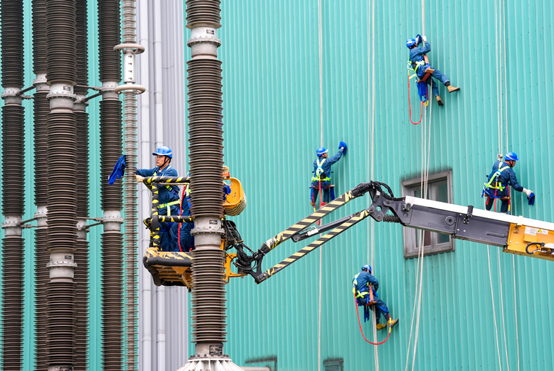 10月28日,國網(wǎng)安徽電力檢修人員對古泉換流站設(shè)備進(jìn)行檢修、維護(hù)。 近日,昌吉—古泉±1100千伏特高壓直流輸電線路的受端站——安徽宣城古泉換流站迎來“體檢”。國網(wǎng)安徽電力的840多名電力檢修人員對古泉換流站進(jìn)行集中檢修,有序開展37個作業(yè)面共計6530余項工作,為電網(wǎng)順利迎峰度冬打下堅實基礎(chǔ)。昌吉—古泉±1100千伏特高壓直流輸電工程起于新疆昌吉換流站,止于安徽古泉換流站,是目前世界上電壓等級最高、輸送距離最遠(yuǎn)、輸送容量最大的輸電工程。 10月28日,國網(wǎng)安徽電力檢修人員對古泉換流站設(shè)備進(jìn)行檢修、維護(hù)。 10月29日,國網(wǎng)安徽電力檢修人員對古泉換流站設(shè)備進(jìn)行檢修、維護(hù)(無人機(jī)照片)。 10月29日,國網(wǎng)安徽電力檢修人員對古泉換流站設(shè)備進(jìn)行檢修、維護(hù)。