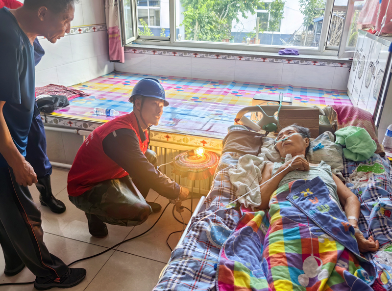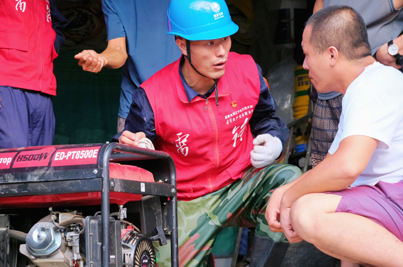 2024-08-26 “有電了,有電了!” 8月25日6時,遼寧葫蘆島市建昌縣興業(yè)麗景家苑小區(qū)5棟樓的地下車庫亮燈了,物業(yè)負責人趙秀東臉上有了笑容。 建昌縣供電公司網(wǎng)格班班長、黨員蘇東陽又是一夜沒合眼。從前一天的16時開始,他負責組織、協(xié)調(diào)18名搶修人員為小區(qū)提供延伸服務,一共制作了5個低壓電纜柜的40個電纜頭?!熬用竦男那椋覀兏型硎?,我們能做的就是快一點,再快一點,有了電,他們就能看到希望?!碧K東陽說。 8月18日23時至21日8時,遼寧省西部地區(qū)出現(xiàn)暴雨到大暴雨。葫蘆島市個別鄉(xiāng)鎮(zhèn)出現(xiàn)特大暴雨,導致電力、通信、交通中斷。國網(wǎng)遼寧省電力有限公司按照“先復電、后搶修”原則,通過線路修復、環(huán)路轉(zhuǎn)帶、啟用臨時發(fā)電設備等方式,滿足群眾基本用電需求。 蘇東陽主動請纓,負責向建昌縣因災暫時無法通電的村鎮(zhèn)運送應急發(fā)電機。從8月19日起,他先后給大屯鎮(zhèn)、黑山科鄉(xiāng)、楊樹灣鄉(xiāng)等未通電村鎮(zhèn)累計運送60臺應急發(fā)電機,聲音變得沙啞,卻無比堅定,“早一分鐘送到,村民就能早一分鐘用上電?!?/span> 大屯鎮(zhèn)是這次特大暴雨的重災區(qū)。8月22日,蘇東陽和6名同事去大屯鎮(zhèn)運送15臺應急發(fā)電機。公路被洪水沖斷,僅剩單排道可以通行,有的路段甚至被攔腰截斷。蘇東陽緊盯前方路面,一邊穩(wěn)穩(wěn)操控方向盤,一邊和后排同事交代,“兄弟們,到了之后,手上動作快點兒,村民都等著用電?!?/span> 歷經(jīng)70分鐘顛簸,蘇東陽一行人到達大屯鎮(zhèn)政府附近,很多村民聚集在此,翹首以待。 7人下車,快速搬卸應急發(fā)電機。 “按下啟動按鈕,緩慢地拉動拉線啟動器,如果有一股阻力,就快速拉動啟動器,發(fā)動機就正常運轉(zhuǎn)了?!碧K東陽半蹲在應急發(fā)電機旁向村民們仔細說明、演示應急發(fā)電機的啟動步驟。 這時,大屯鎮(zhèn)黨委副書記黨委副書記、鎮(zhèn)長張艦找到蘇東陽:“三道溝村有一戶重癥患者,需要使用吸氧機和吸痰器,他們住在河對岸,今天水退了些,才出村求助。” 蘇東陽和張艦迅速商定:特事特辦,專門給重癥患者家送去一臺應急發(fā)電機。 眼前是150米寬的河道,蘇東陽和同事要與時間賽跑。在藍天救援隊的協(xié)助下,眾人用木杠固定好發(fā)電機,踏入河中。 蘇東陽站在第一排,水流湍急,泥沙松軟,很難站穩(wěn)。他們每前進一步,水花被高高濺起后直接滲入水靴里。他們喊著號子,扛著75公斤重的應急發(fā)電機快速行進。10多分鐘后大家上岸,又徒步1千米遠,終于到了患者家??粗稍诖采洗蛑c滴,等待吸氧、吸痰的老人,蘇東陽和同事加快手上的動作,將應急發(fā)電機接入入戶電源。之后,他用電壓筆檢測設備電壓,查看吸氧機、吸痰器運行情況。推上開關(guān),儀器燈亮了,吸氧機、吸痰器啟動了,老人的狀態(tài)漸漸轉(zhuǎn)好,眼睛也亮了。 “看到你們來,我就知道,我老媽有救了!”老人的女兒握住蘇東陽的手,眼含熱淚地表達感謝。 蘇東陽和同事們的“紅馬甲”和“藍工裝”已被浸透,分不清是河水還是汗水。
