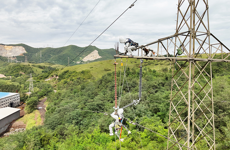 2024-9-18 近日,在遼寧省本溪市溪湖區(qū)鄭家溝,國網(wǎng)本溪供電公司共產(chǎn)黨員突擊隊3名隊員正在30米的高空上,帶電更換220千伏東本線13號鐵塔A相遭受雷擊的合成絕緣子,確保為本鋼集團安全可靠供電。 據(jù)悉,220千伏東本線于1974年1月投運,線路全長8.6千米,是連接220千伏東風變電站和220千伏本溪變電站的一條重要輸電線路,同時負責為本溪市重點企業(yè)——本鋼集團有限公司供電。 幾日前,輸電運維人員利用無人機巡檢220千伏東本線13號鐵塔時發(fā)現(xiàn),A相合成絕緣子遭受嚴重雷擊閃絡(luò),如不及時處理將影響本鋼集團安全生產(chǎn)。為確保電力可靠供應,本溪供電公司組織運檢、安監(jiān)及輸電工區(qū)召開專業(yè)會議,經(jīng)過綜合研判情況后,決定采用帶電作業(yè)的方式消缺。 在作業(yè)現(xiàn)場,2名地電位電工穿好絕緣服、戴好安全帽,依次爬上距地面25米高的鐵塔。隨后,等電位電工操作“小飛人”自動升降裝置緩緩升空,伴隨“刺啦”的放電聲進入強電場。一小時后,經(jīng)過塔上塔下人員的全力合作,1支合成絕緣子、2支避雷器安裝完畢。 國網(wǎng)本溪供電公司相關(guān)負責人表示,電網(wǎng)秋檢以來,國網(wǎng)本溪供電公司成立11支共產(chǎn)黨員突擊隊,采用“立體巡檢+遠程監(jiān)控”的形式,重點對27條“城市生命線”和為7家規(guī)上重要企業(yè)客戶供電的輸電線路開展精細化特巡,堅持“能帶不?!钡脑瓌t,讓用戶在“零感知”的情況下消除缺陷11處,為本溪地區(qū)電網(wǎng)安全穩(wěn)定運行及迎峰度冬做好充分準備。