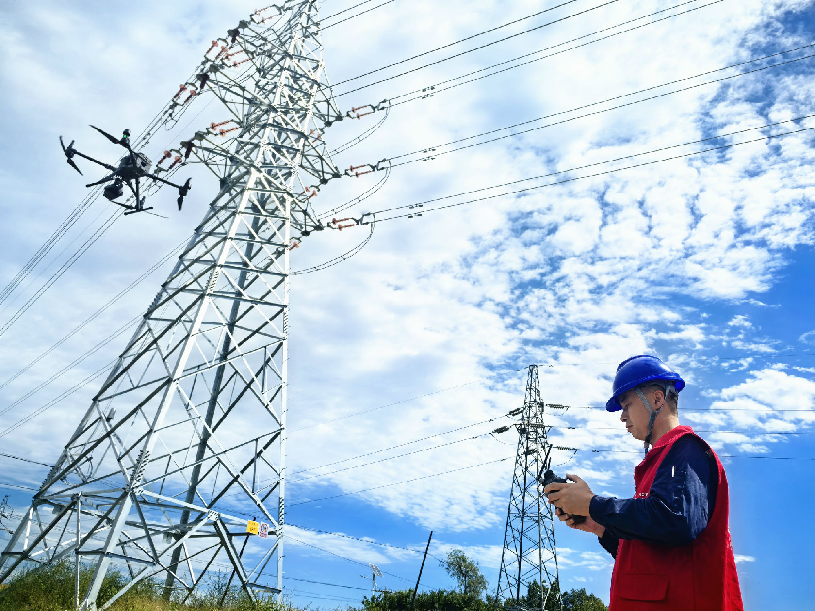 上圖為國(guó)網(wǎng)錦州供電公司員工在迎峰度夏期間借助無人機(jī)開展智能化線路特巡。吳宏圖