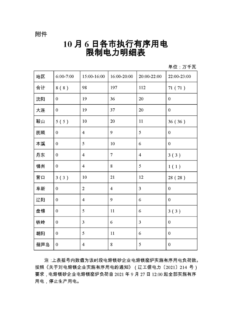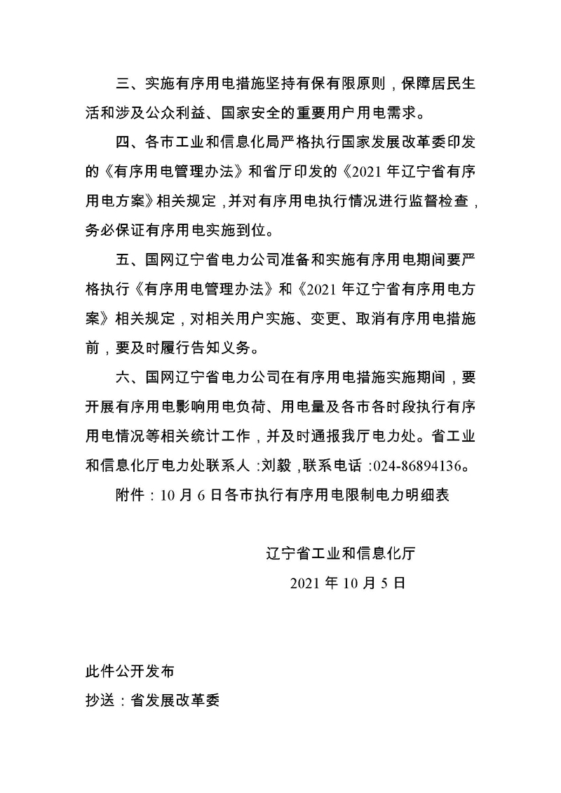 關于10月6日實施有序用電的通知