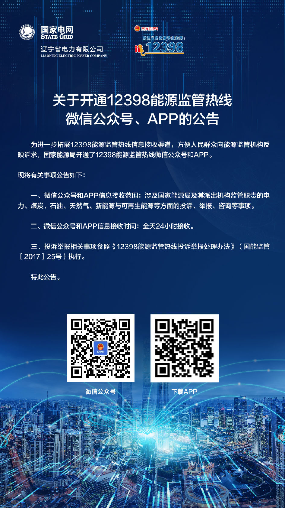 關(guān)于開通12398能源監(jiān)管熱線微信公眾號、APP的公告