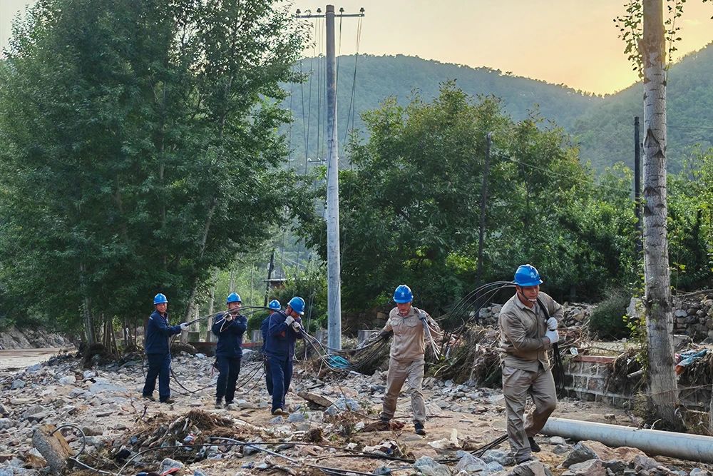 日,國網(wǎng)遼寧電力員工(沈陽公司支援)在葫蘆島市綏中縣加碑巖鄉(xiāng)黃土梁子村開展搶修復(fù)電工作。卜冠男 攝