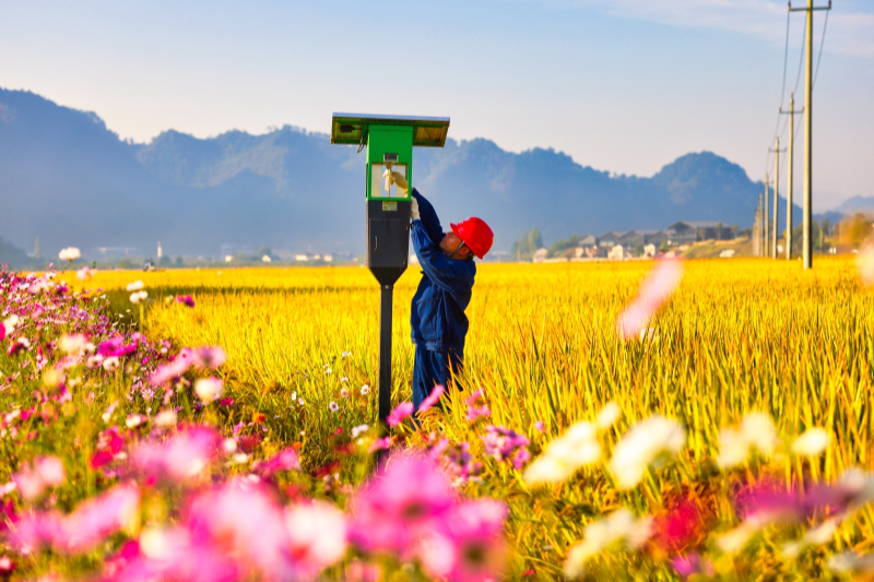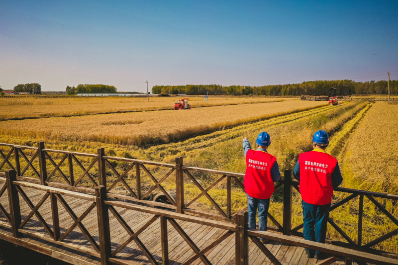 五谷豐登,瓜果飄香。9月22日農(nóng)歷秋分,第七個(gè)中國農(nóng)民豐收節(jié)到來。根據(jù)中央一號文件部署,今年豐收節(jié)以“學(xué)用‘千萬工程’禮贊豐收中國”為主題,各地舉行豐富多彩的群眾性活動喜慶豐收。國家電網(wǎng)有限公司深入學(xué)習(xí)貫徹習(xí)近平總書記關(guān)于“三農(nóng)”工作的重要論述和重要指示精神,堅(jiān)決落實(shí)黨中央、國務(wù)院決策部署,學(xué)習(xí)運(yùn)用“千萬工程”經(jīng)驗(yàn),當(dāng)好電力先行官,架起黨群連心橋,持續(xù)推進(jìn)農(nóng)網(wǎng)鞏固提升工程、不斷優(yōu)化供電服務(wù)舉措、夯實(shí)鞏固幫扶工作成效,有力有效推動鄉(xiāng)村全面振興,為實(shí)現(xiàn)農(nóng)業(yè)農(nóng)村現(xiàn)代化、建設(shè)農(nóng)業(yè)強(qiáng)國提供充足可靠的電力支撐。 用心守護(hù)好“豐”景 國家電網(wǎng)河北電力(保定)共產(chǎn)黨員服務(wù)隊(duì)隊(duì)員在望蕊山莊百畝桃園幫助果農(nóng)采收。 國網(wǎng)冀北秦皇島供電公司員工在南戴河村稻田向種植戶開展安全用電宣傳。 國網(wǎng)山西長治供電公司員工在龍溪山集慶豐收活動現(xiàn)場宣傳安全用電知識。 國網(wǎng)山東濱州供電公司員工在“鶴伴珍谷”小米種植基地開展用電指導(dǎo)。 國網(wǎng)山東泰安供電公司員工到菊花茶加工企業(yè)開展用電服務(wù)。 國網(wǎng)浙江杭州供電公司員工在紹魯村光明農(nóng)場檢查智慧農(nóng)田電氣設(shè)備。 國家電網(wǎng)安徽電力(亳州)共產(chǎn)黨員服務(wù)隊(duì)隊(duì)員幫助果農(nóng)采收油桃。 國網(wǎng)福建寧德供電公司員工在閩威實(shí)業(yè)有限公司開展安全用電檢查。 國網(wǎng)湖北孝感供電公司員工利用無人機(jī)為下王村20畝糯稻收割提供照明電源。 國網(wǎng)吉林四平供電公司員工在梨樹縣孤家子鎮(zhèn)勝豐家庭農(nóng)場巡檢農(nóng)灌線路。 國網(wǎng)黑龍江哈爾濱供電公司員工在閆家崗農(nóng)場開展安全用電檢查。 國網(wǎng)陜西寶雞供電公司員工走訪了解獼猴桃種植戶用電需求。 國網(wǎng)新疆博爾塔拉供電公司員工走訪阿合其農(nóng)場南美白對蝦養(yǎng)殖戶。 國網(wǎng)四川自貢供電公司員工在賴河壩糧油(稻漁)現(xiàn)代農(nóng)業(yè)園區(qū)開展用電服務(wù)。 國網(wǎng)重慶秀山供電公司員工為清溪場街道巨豐村村民提供照明用電。 電亮鄉(xiāng)村賦動能 國網(wǎng)天津城西供電公司員工對35千伏寺邊線、迎邊線開展綜合檢修。 國網(wǎng)河北石家莊供電公司員工帶電檢修10千伏西正線。 國網(wǎng)山西大同供電公司員工架設(shè)10千伏左南線,保障農(nóng)業(yè)秋收用電。 國網(wǎng)山東臨沂供電公司員工巡檢涉及農(nóng)業(yè)用電的輸電線路。 國網(wǎng)上海崇明供電公司員工在東灘現(xiàn)代農(nóng)業(yè)園區(qū)了解農(nóng)戶用電需求。 國網(wǎng)浙江紹興供電公司員工在越城區(qū)皋埠鎮(zhèn)開展不停電作業(yè),為秋糧采收新增電源點(diǎn)。 國網(wǎng)河南安陽供電公司員工巡檢臺區(qū)設(shè)備,全力做好秋收供電保障。 國網(wǎng)遼寧撫順供電公司員工巡檢輸電線路,保障秋收用電。 國網(wǎng)蒙東通遼供電公司員工改造10千伏小坤圖溝變壓器臺區(qū)。 國家電網(wǎng)四川電力成都連心橋共產(chǎn)黨員服務(wù)隊(duì)隊(duì)員在天府糧倉國家現(xiàn)代農(nóng)業(yè)產(chǎn)業(yè)園檢修用電設(shè)備。 惠農(nóng)助農(nóng)促增收 國網(wǎng)北京平谷供電公司員工在西凡各莊村向農(nóng)業(yè)大棚種植人員了解用電需求。 國網(wǎng)天津?qū)幒庸╇姽締T工在俵口鎮(zhèn)興家坨村走訪水產(chǎn)養(yǎng)殖大戶了解用電需求。 國網(wǎng)冀北遵化供電公司員工在京五營村田間開展安全用電宣傳。 國網(wǎng)山東威海供電公司員工在石島新港為漁民講解安全用電知識。 國網(wǎng)江蘇淮安供電公司員工在寶應(yīng)湖三分場檢測電氣化烘干系統(tǒng),為秋糧安全入庫做好用電保障。 國網(wǎng)安徽滁州供電公司員工在黃莊村巡檢智能農(nóng)業(yè)監(jiān)測設(shè)備。 國網(wǎng)河南孟州供電公司員工開展惠農(nóng)助農(nóng)直播。 國網(wǎng)寧夏吳忠供電公司員工在青葡萄種植基地開展安全用電宣傳。 國網(wǎng)江西南昌供電公司員工幫助農(nóng)戶維修農(nóng)機(jī)。 國網(wǎng)青海海北供電公司員工在果洛藏貢麻村“電力愛心超市”開展惠農(nóng)助農(nóng)活動。