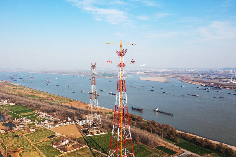 編者按:近日,中央電視臺(tái)慶祝中華人民共和國成立75周年特別節(jié)目《共和國巡禮》播出“安徽篇”——《滔滔江淮水 潮涌風(fēng)帆勁》,報(bào)道國網(wǎng)安徽省電力有限公司爆破拆除新中國第一座投入使用的跨江電塔,建成投運(yùn)白鶴灘至江蘇±800千伏特高壓工程新電塔,展示加快電網(wǎng)高質(zhì)量發(fā)展成就,助力譜寫中國式現(xiàn)代化安徽新篇章的生動(dòng)實(shí)踐。 近年來,國網(wǎng)安徽省電力有限公司認(rèn)真落實(shí)國家電網(wǎng)有限公司黨組部署,立足安徽“承東啟西”區(qū)位優(yōu)勢,加快推動(dòng)安徽電網(wǎng)升級為承接長三角外電“大中心”、省際轉(zhuǎn)送“大樞紐”、綠色清潔能源資源配置“大平臺(tái)”,加快提升過江通道交換、資源富集區(qū)外送、與華東主網(wǎng)交互的能力,著力建設(shè)具有安徽特色、全國示范價(jià)值的省域新型電力系統(tǒng),為中國式現(xiàn)代化賦動(dòng)能、作貢獻(xiàn)。 60年風(fēng)雨洗禮皖中大跨越 在長江蕪湖段下游,東、西梁山之間,這里曾矗立著一座承載著歷史與榮耀的電力豐碑——220千伏皖中大跨越輸電線路工程。104米高的煙囪式鋼筋混凝土塔挺立在三面臨水的南岸,與對岸107米高塔相連,跨江檔距1411米。這是220千伏西劉2831/2832線的過江線,也是國內(nèi)第一批、安徽第一條220千伏大跨越長江輸電通道。 皖中220千伏大跨越輸電線路投運(yùn)。 該跨江輸電線路工程于1958年投資建設(shè),歷時(shí)2年建成投運(yùn),連接安徽南部和北部電網(wǎng),并與華東電網(wǎng)相聯(lián)接。此后25年,220千伏皖中大跨越輸電鐵塔一直是南北電力調(diào)節(jié)的樞紐,承擔(dān)著安徽唯一跨江電力輸送通道的重任,被譽(yù)為“皖江第一跨”。直至1985年500千伏荻港大跨越建成,才有了第二條皖南過江的電力通道。 220千伏皖中大跨越輸電線路南塔 伴隨著工業(yè)化進(jìn)程加快,電力需求不斷攀升,電網(wǎng)也加速迭代升級。2014年,安徽南北電網(wǎng)500千伏跨江輸電線路互聯(lián)網(wǎng)架建成,220千伏皖中大跨越輸電線路正式解環(huán)運(yùn)行。2019年8月29日10時(shí)03分,伴隨著一聲巨響,皖中大跨越輸電線路南塔緩緩倒在預(yù)定位置,標(biāo)志著歷經(jīng)60年風(fēng)雨洗禮的皖中大跨越完成拆除工作,正式告別歷史舞臺(tái)。 皖中大跨越輸電線路南塔的爆破,還天門山以原貌,同時(shí)也掃清了長江深水航道最后一道“障礙”,保障5萬噸以上貨輪順利通航,大幅提升長江水域運(yùn)力,有助于加快長三角一體化發(fā)展,推動(dòng)“西電東送”重點(diǎn)工程實(shí)施。 特高壓跨江電塔挺立長江東 2022年1月4日,經(jīng)過建設(shè)者95天的緊張奮戰(zhàn),高278.2米、單座塔重2200余噸的新式跨江鋼管塔在長江東梁山邊拔地而起。它避開了重要自然景觀和重要防洪區(qū)域,與長江沿岸其他建筑和諧共存,肩負(fù)起新的皖中跨越輸電使命。 白鶴灘—江蘇±800千伏特高壓直流輸電線路工程長江大跨越高塔封頂。 這是白鶴灘—江蘇±800千伏特高壓直流輸電工程安徽段長江大跨越工程。該工程在國內(nèi)首次采用±800千伏和±500千伏線路同塔架設(shè)的技術(shù)方案,經(jīng)受了跨越塔基礎(chǔ)應(yīng)力分析難度大、精度要求高的挑戰(zhàn),克服鋼管塔單管重、吊裝難等難題,最大限度減少對長江流域土地資源的占用以及環(huán)境的影響。 作為“西電東送”戰(zhàn)略重點(diǎn)工程,白鶴灘—江蘇特高壓工程起于四川省涼山州布拖縣,止于江蘇省蘇州市常熟市,線路全長2080公里,通過特高壓直流通道7毫秒即可將西部清潔電能輸送至華東。其中,安徽段全長361.8公里,桿塔共748基。 施工人員為白鶴灘—江蘇±800千伏特高壓直流輸電線路工程長江大跨越工程安裝附件。 在施工中,單側(cè)重達(dá)30多噸的地線橫擔(dān)吊裝是工程難點(diǎn)。施工團(tuán)隊(duì)?wèi)?yīng)用具有吊裝幅度廣、重量大優(yōu)勢的雙平臂抱桿組塔施工,單件最大吊重可達(dá)16噸;跨江鐵塔以三段式分解吊裝,實(shí)現(xiàn)了鐵塔支架的精準(zhǔn)對接;施工團(tuán)隊(duì)還創(chuàng)新改良防螺栓墜落工具包、磁吸式磁力矩開關(guān)、高空人員站位平臺(tái)等工器具,解決裝配難題、提高作業(yè)效率。 白鶴金沙水湍急,千里川蘇銀線牽。2022年7月,白鶴灘—江蘇±800千伏特高壓直流輸電工程全線投運(yùn),有效保障了白鶴灘水電站發(fā)電大規(guī)模外送,滿足華東地區(qū)電力需求。 目前,11回特高壓直流線路跨越安徽送往滬蘇浙,安徽電網(wǎng)已成為華東電網(wǎng)的“橋頭堡”、西電東送的“大樞紐”,為保障華東地區(qū)能源電力供應(yīng)和全國電網(wǎng)安全穩(wěn)定運(yùn)行發(fā)揮重要作用。 GIL江底輸電管廊再攀技術(shù)高峰 長江,作為亞洲第一長河,橫貫我國東西,年貨運(yùn)量占全國河流總運(yùn)輸量的70%,素有“黃金水道”之稱。 2014年9月,國務(wù)院印發(fā)《關(guān)于依托黃金水道推動(dòng)長江經(jīng)濟(jì)帶發(fā)展的指導(dǎo)意見》,安徽全面融入長三角經(jīng)濟(jì)圈,800里皖江成為黃金水道上的黃金航線。為避免繁多的跨江架空線路對黃金航道及長江生態(tài)環(huán)境的影響,安全穩(wěn)定、環(huán)境友好的GIL江底輸電管廊成為電網(wǎng)建設(shè)的必然選擇。 蕪湖GIL管