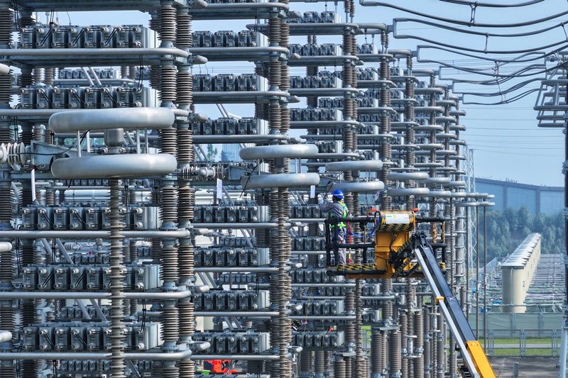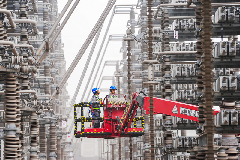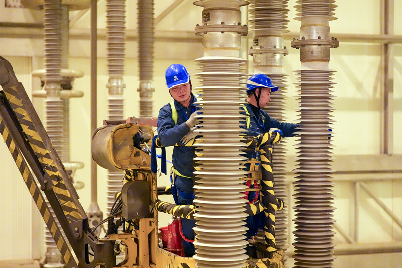 10月28日,國網(wǎng)安徽電力檢修人員對(duì)古泉換流站設(shè)備進(jìn)行檢修、維護(hù)。 近日,昌吉—古泉±1100千伏特高壓直流輸電線路的受端站——安徽宣城古泉換流站迎來“體檢”。國網(wǎng)安徽電力的840多名電力檢修人員對(duì)古泉換流站進(jìn)行集中檢修,有序開展37個(gè)作業(yè)面共計(jì)6530余項(xiàng)工作,為電網(wǎng)順利迎峰度冬打下堅(jiān)實(shí)基礎(chǔ)。昌吉—古泉±1100千伏特高壓直流輸電工程起于新疆昌吉換流站,止于安徽古泉換流站,是目前世界上電壓等級(jí)最高、輸送距離最遠(yuǎn)、輸送容量最大的輸電工程。 10月28日,國網(wǎng)安徽電力檢修人員對(duì)古泉換流站設(shè)備進(jìn)行檢修、維護(hù)。 10月29日,國網(wǎng)安徽電力檢修人員對(duì)古泉換流站設(shè)備進(jìn)行檢修、維護(hù)(無人機(jī)照片)。 10月29日,國網(wǎng)安徽電力檢修人員對(duì)古泉換流站設(shè)備進(jìn)行檢修、維護(hù)。