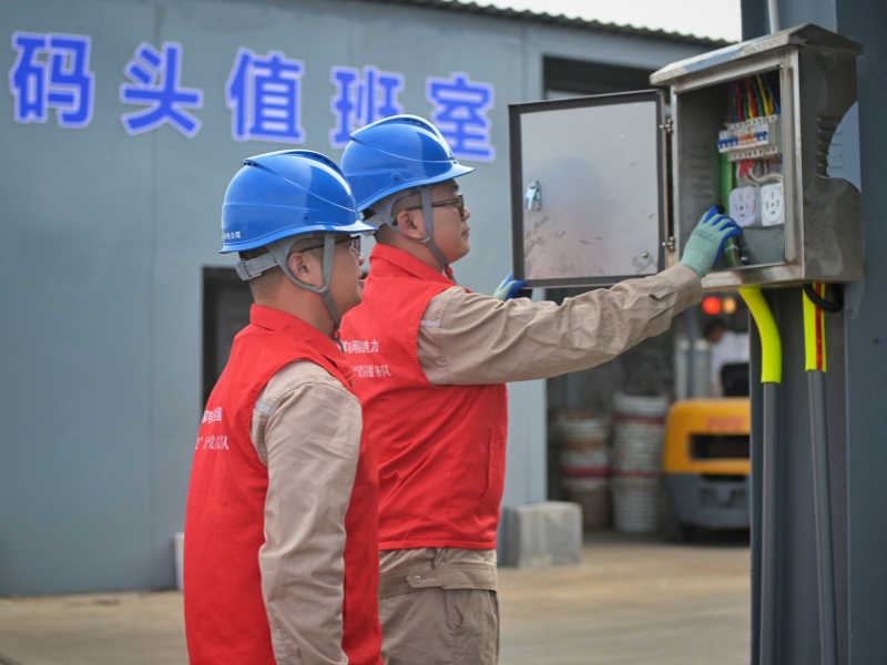 國(guó)家電網(wǎng)福建電力“雙滿意”(東山谷文昌)共產(chǎn)黨員服務(wù)隊(duì)隊(duì)員在澳角村碼頭漁場(chǎng)排查電力設(shè)備安全隱患。